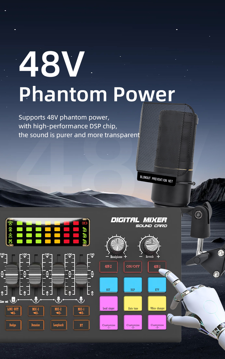 【Enhanced Experience】With the inclusion of LED lights, the Hosabely audio mixer not only enhances the auditory experience but also adds a visual element to performances or streams. Adding to the immersive experience, the colorful LED lights that move in sync with the music, can create a dynamic and visually captivating atmosphere, adding an extra layer of excitement to karaoke sessions, live performances, or gaming livestreams.