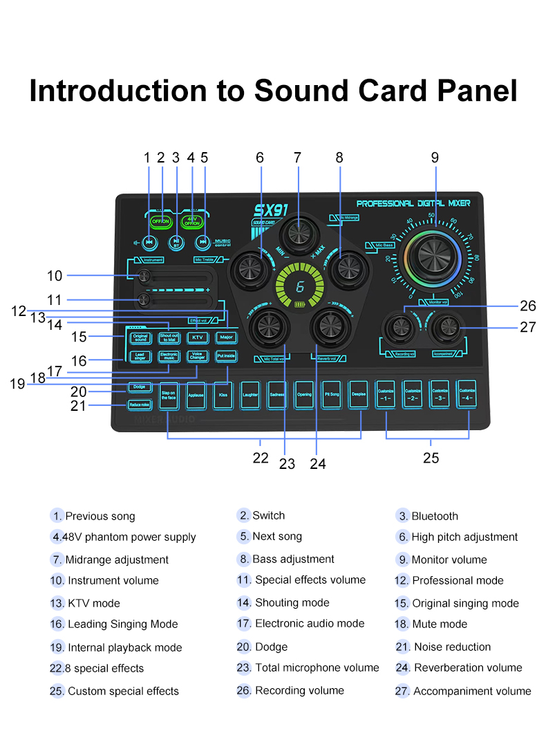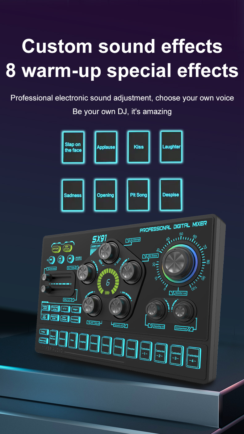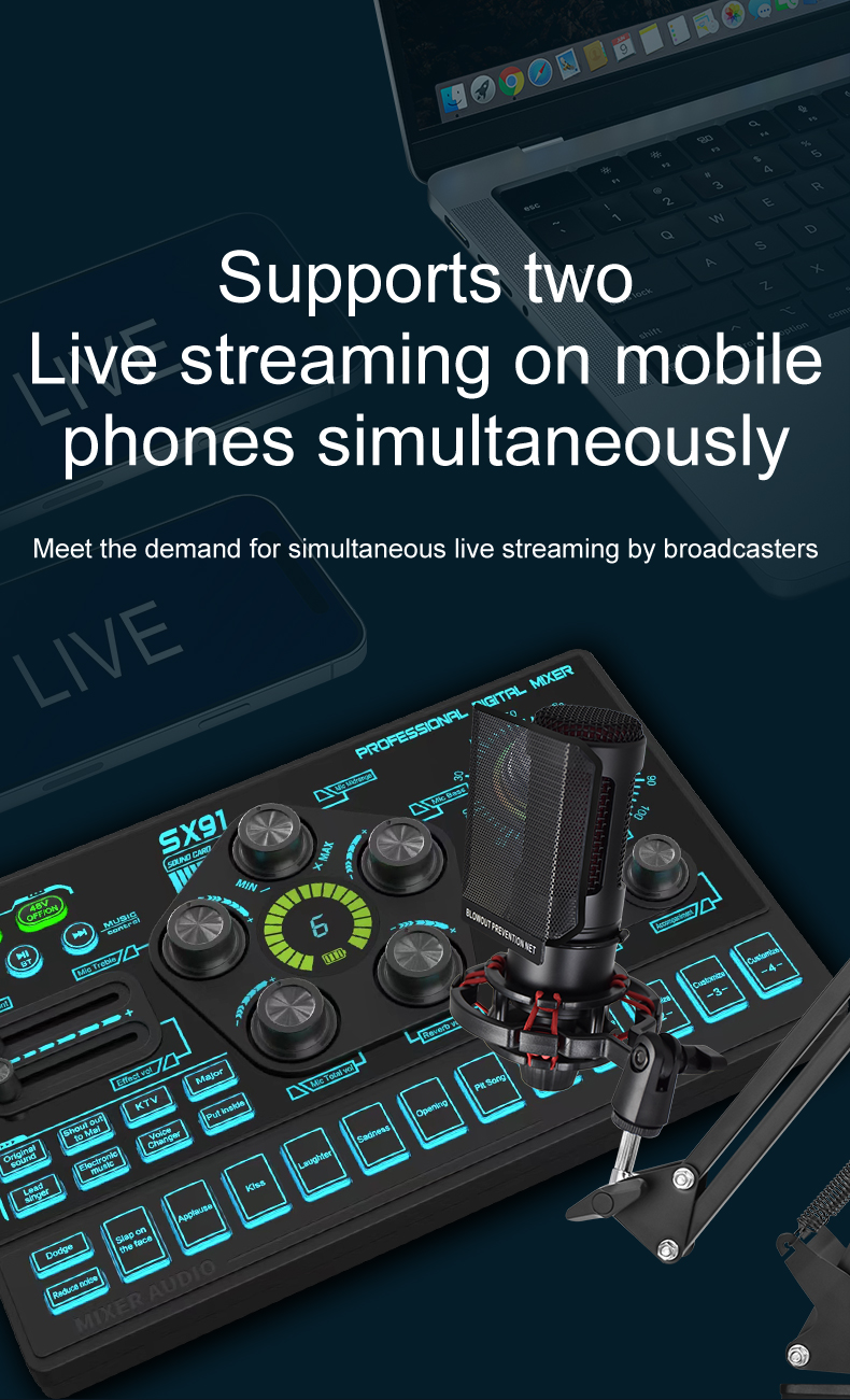 🔥【Plug and Play & Easy To Use】- This SX91 sound card with multiple sound effects can be used on any mobile phone, computer, and Any game platform. No need extra driver software. You can connect to different devices (computer/ mobile phone/ laptop) by using different connection methods. You can even connect with two mobile phones to livestream on both streaming platforms at the same time. The podcast equipment bundle will bring more fun to you and make your recording more creative.
