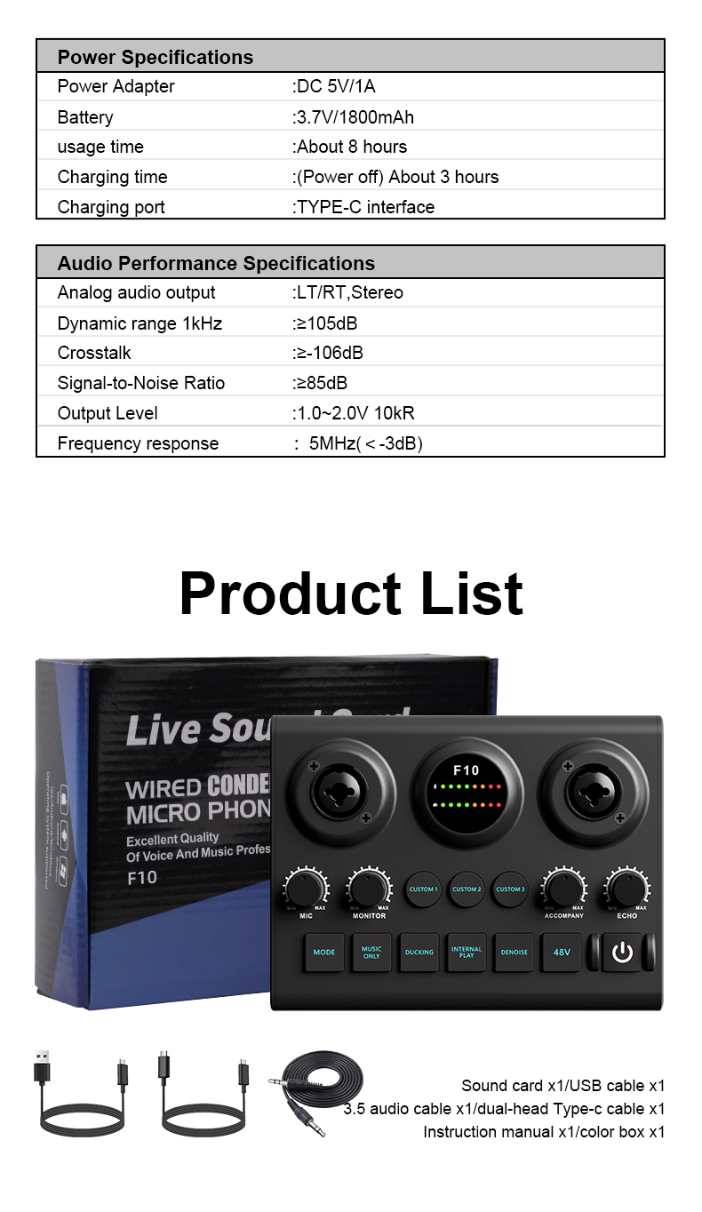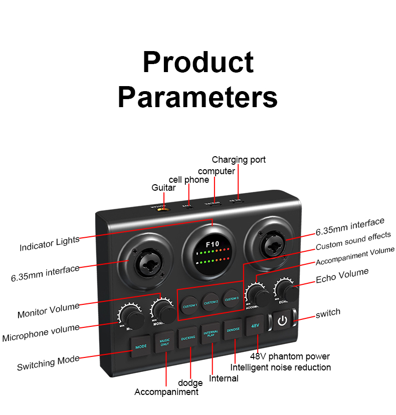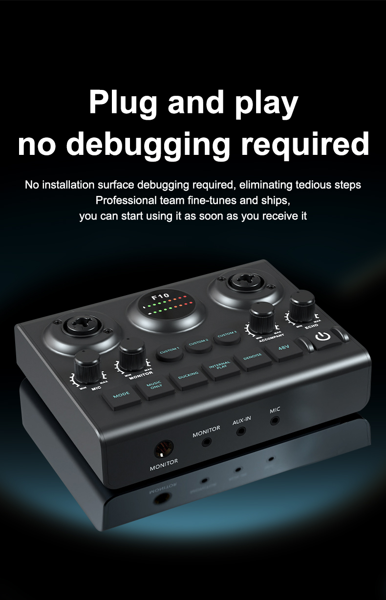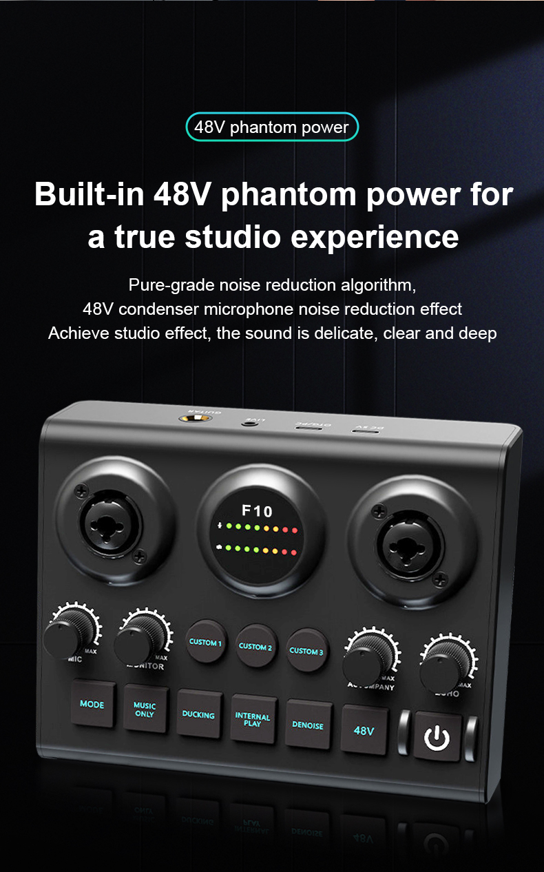 - 【Plug&Play】With an extremely simple and straightforward panel, beginners can also get started with the operation directly, even without the need for instructions. Type-C port is OTG-enabled, you can directly connect to the computer, plug and play. Connect your condenser microphone, phone, computer, start the music journey now.