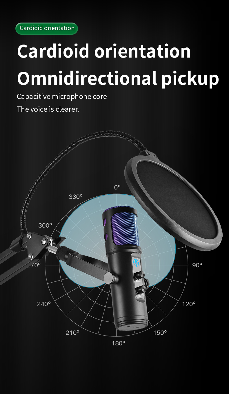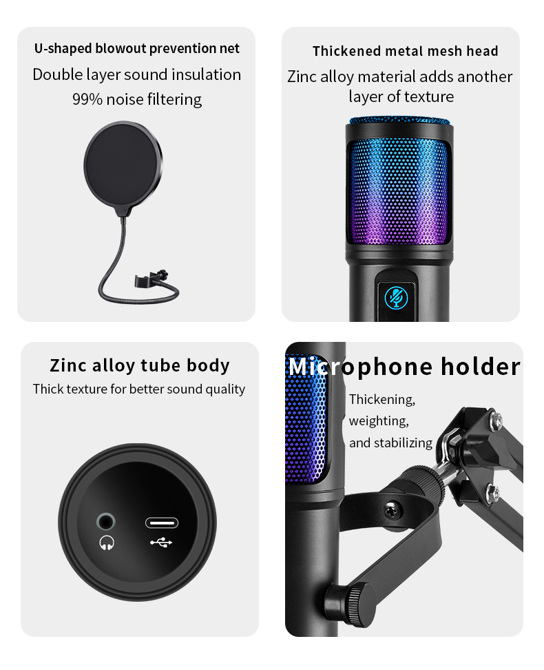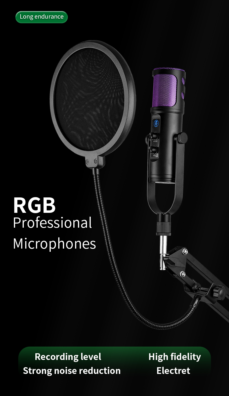 [High-fidelity capture] Release the power of the 96kHz microphone. This 96kHz RGB USB microphone for mobile phones captures every nuance of your voice to ensure excellent sound quality. Its Cardioid pickup mode can effectively eliminate background noise. Add a shock-absorbing bracket and a detachable pop filter to enhance your recording effect and achieve excellent sound quality. The foldable microphone tripod is now expanded and enlarged to provide higher stability for your game table and minimize vibration to enhance the recording experience.