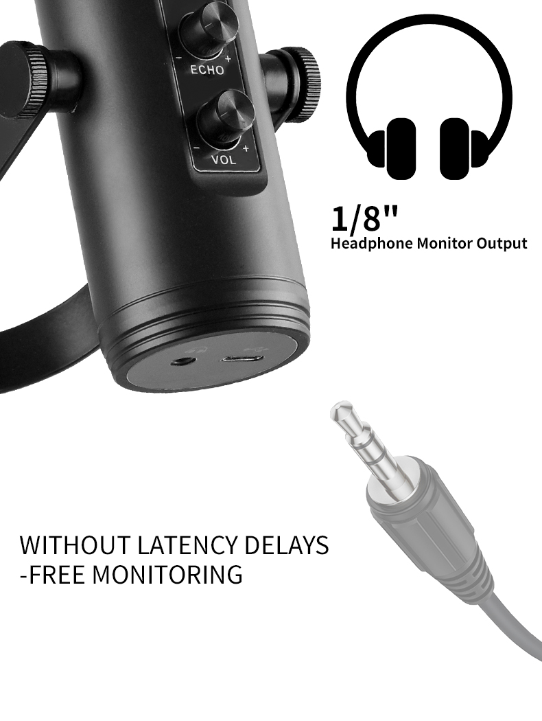 [Precision control] The volume knob designed by the bottom gear enhances the function to improve convenience and tactile user experience. Seamless dialing for precise volume and sensitivity control. Press to immediately mute the studio microphone, and then press again to unmute. In addition, this monitor microphone includes a 3.5mm headphone jack for real-time monitoring-ideal for games, live broadcasts, vocal recording, ASMR, broadcasting, podcasting, and professional conferences.