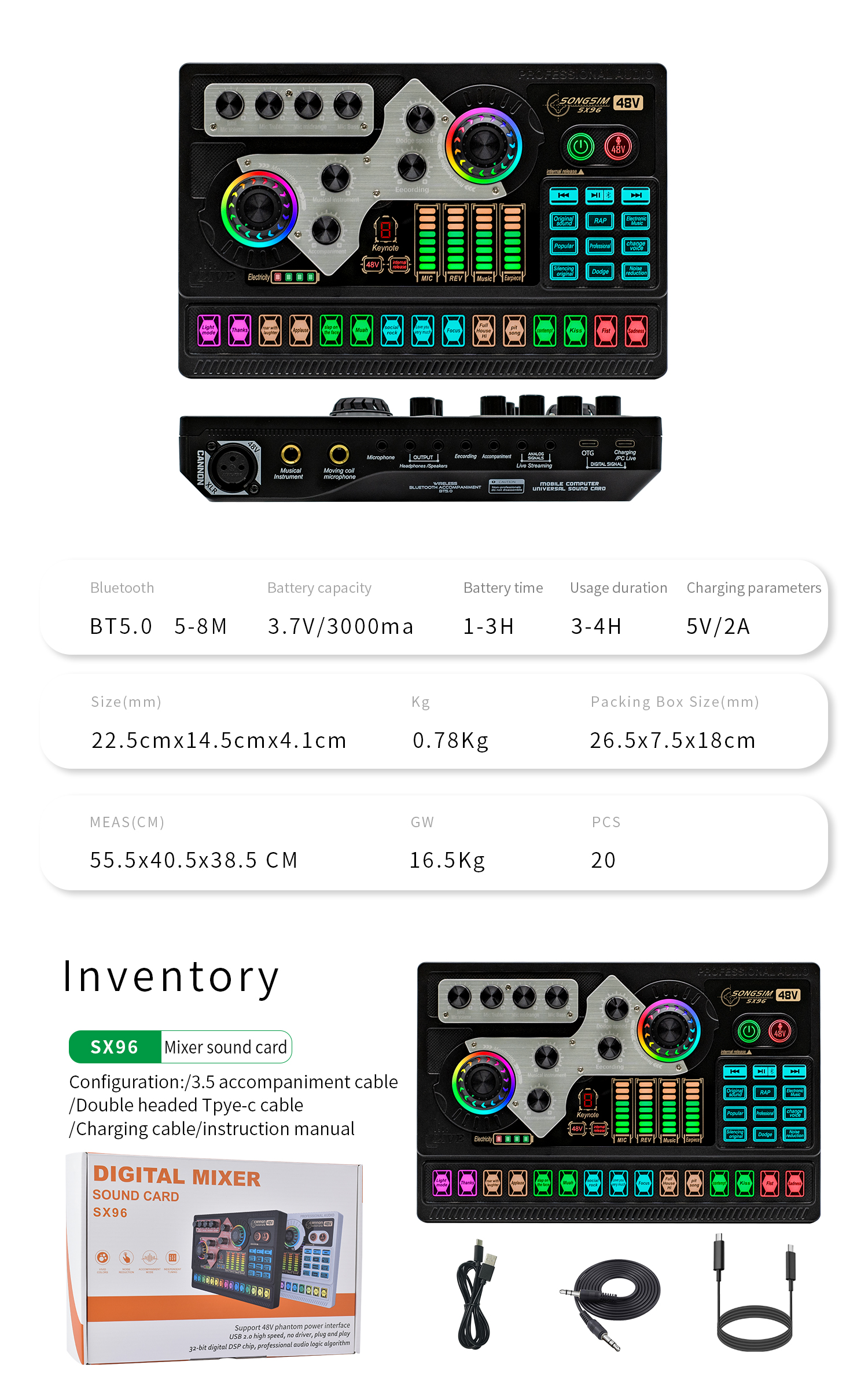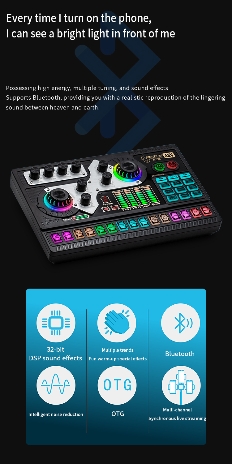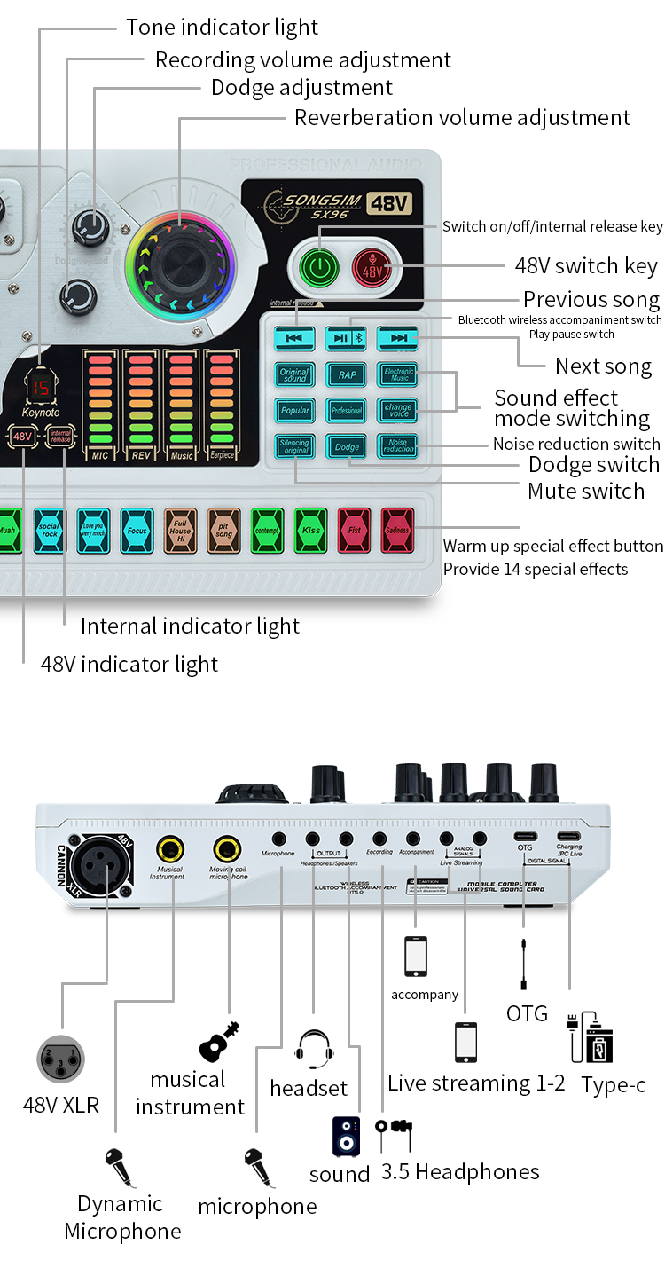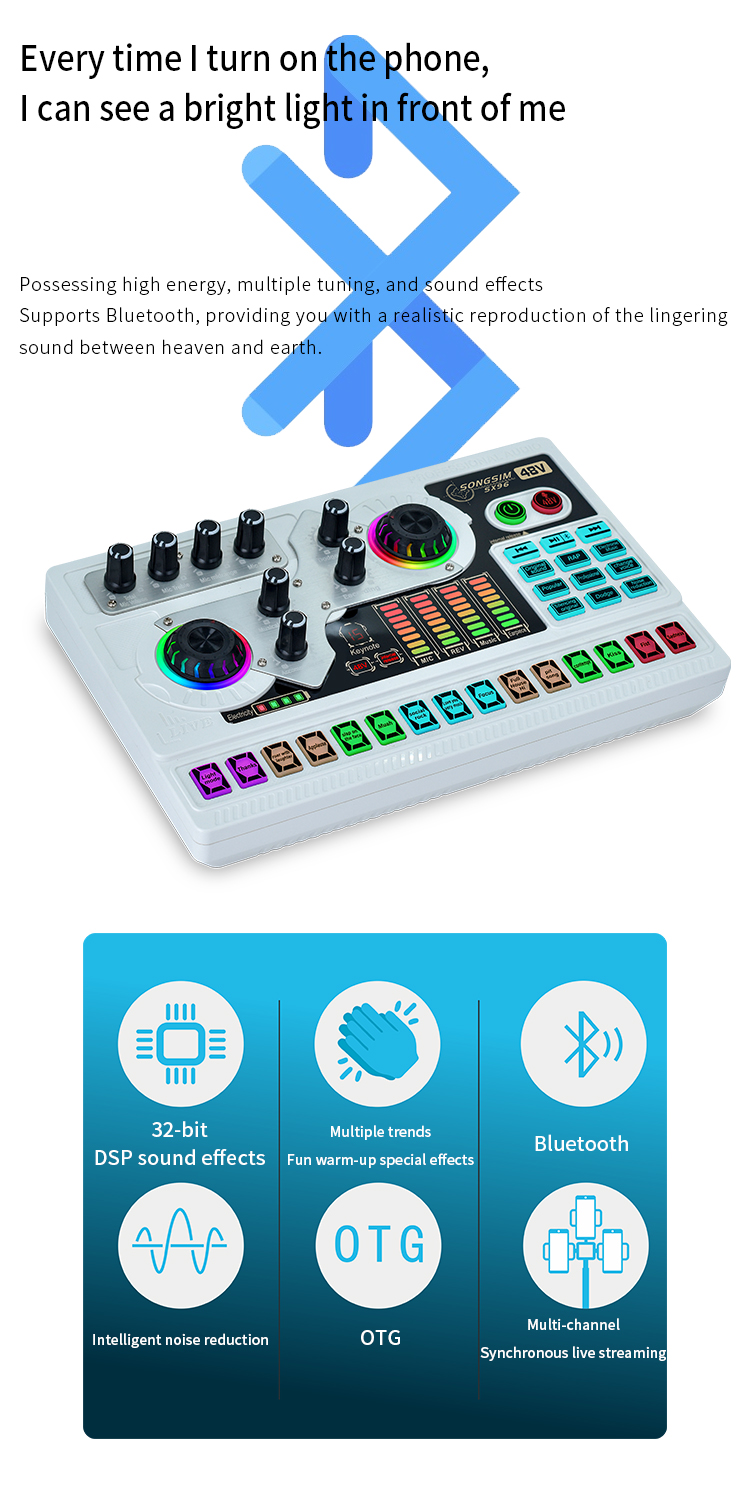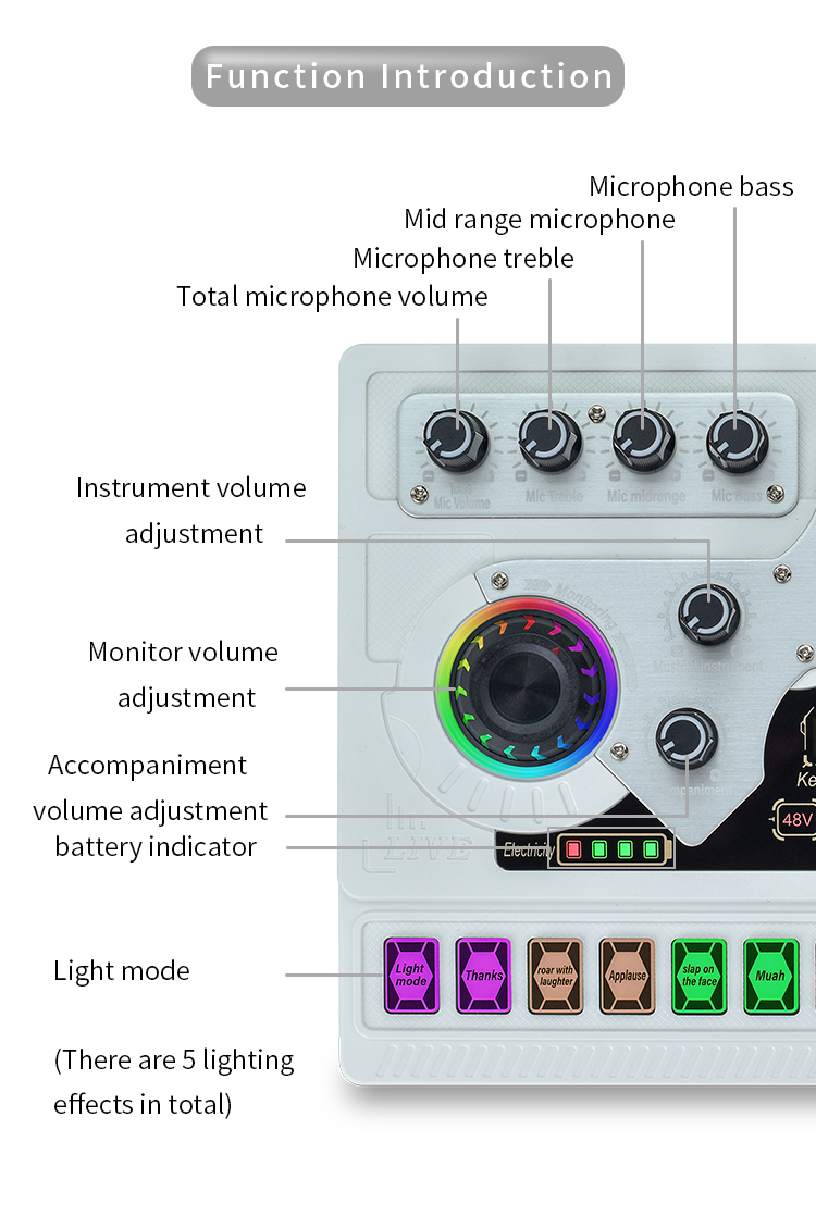 Multi-Device Support - Compatible for double cell phone live, mobile phone computer synchronous live, one computer live, computer accompaniment cell phone live, instrument input cell phone live. Support two microphones connected at the same time, highpitch, alto-voice and lowpitch can be adjusted independently.The sound board voice changer machine can be compatible with PC, Computer, iPad, Tablet, PS4, Xbox One, Xbox, Switch, IOS, Android phone, Windows, and electronic musical instrument.