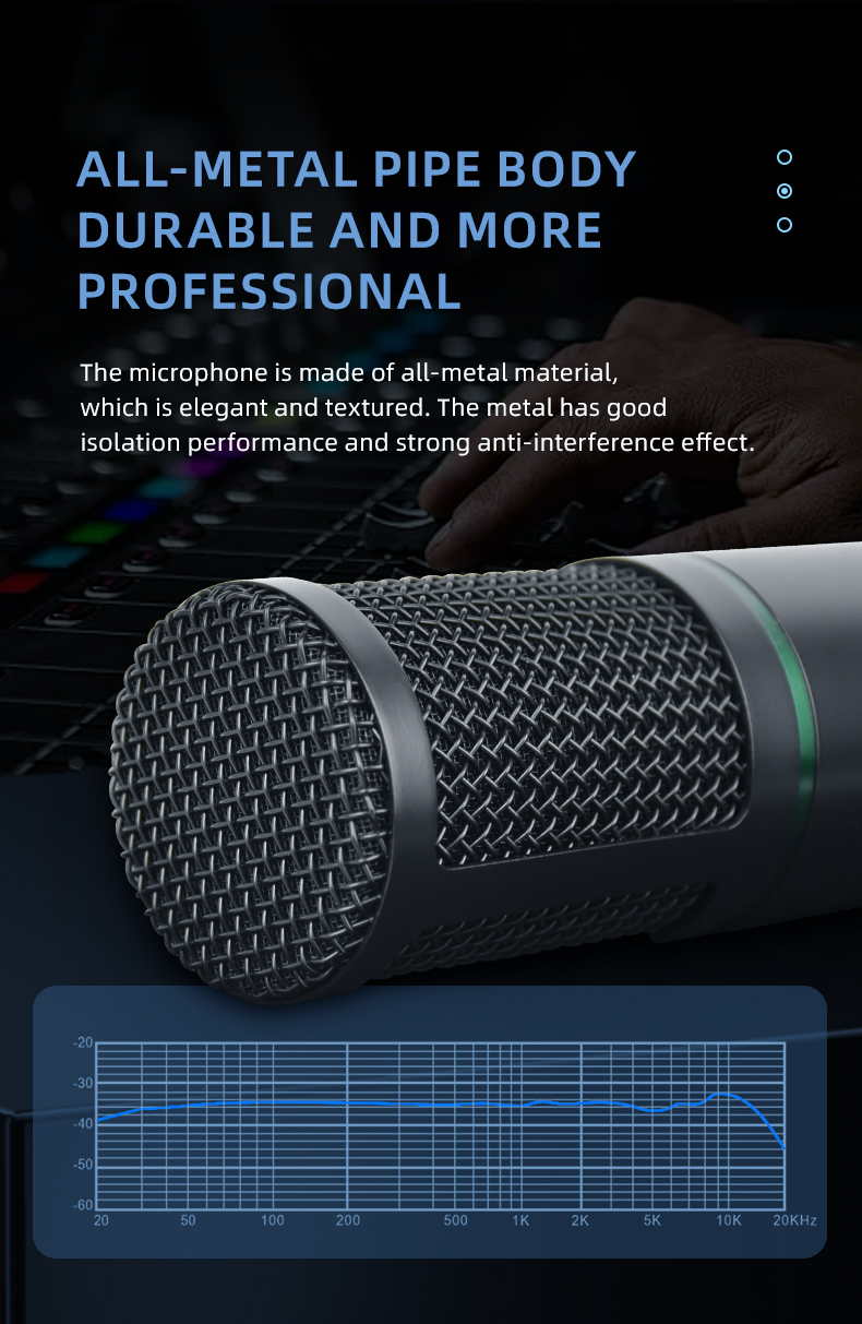 Excellent Sound Quality - The recording equipment has been designed with latest professional sound chipset, podcast microphone used the Metal material, so your recordings will be crystal clear. The cardioid pickup pattern offers pristine and accurate capture, which is more suitable for recording podcasts, vocals and voice works.