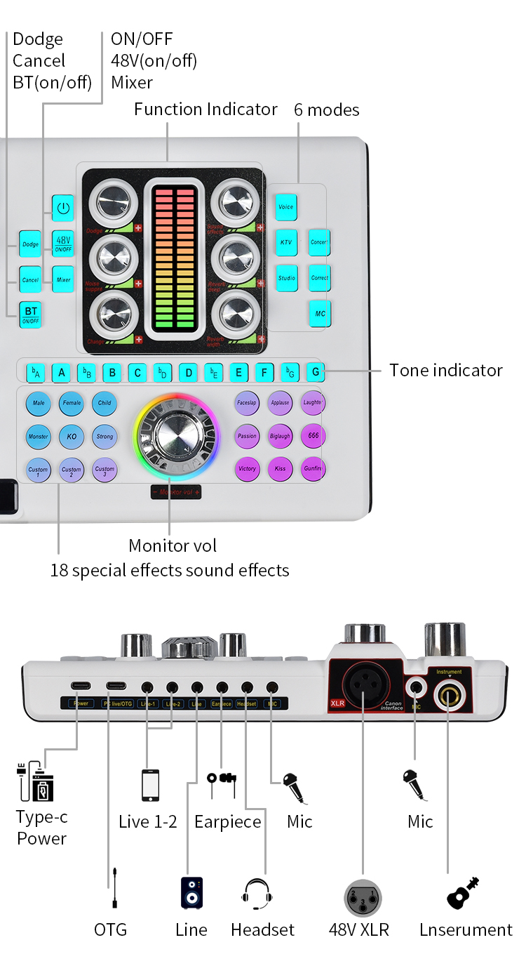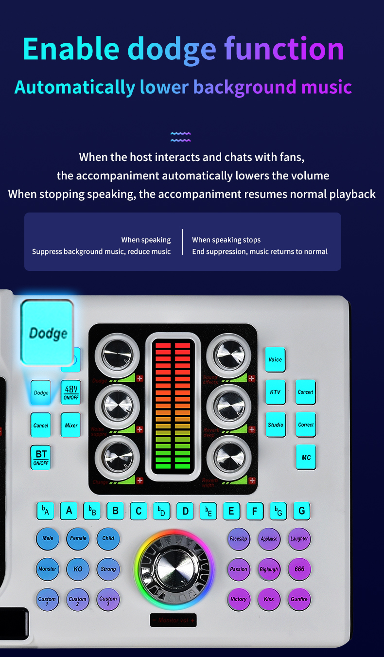 🎤【Rich Sound Effects & 4 Voice Changer】This newly designed recording studio equipment contains most common functions(reverberation, treble-bass, noise reduction, accompaniment, dodge, voice change), you can enjoy the personalized live broadcast atmosphere.