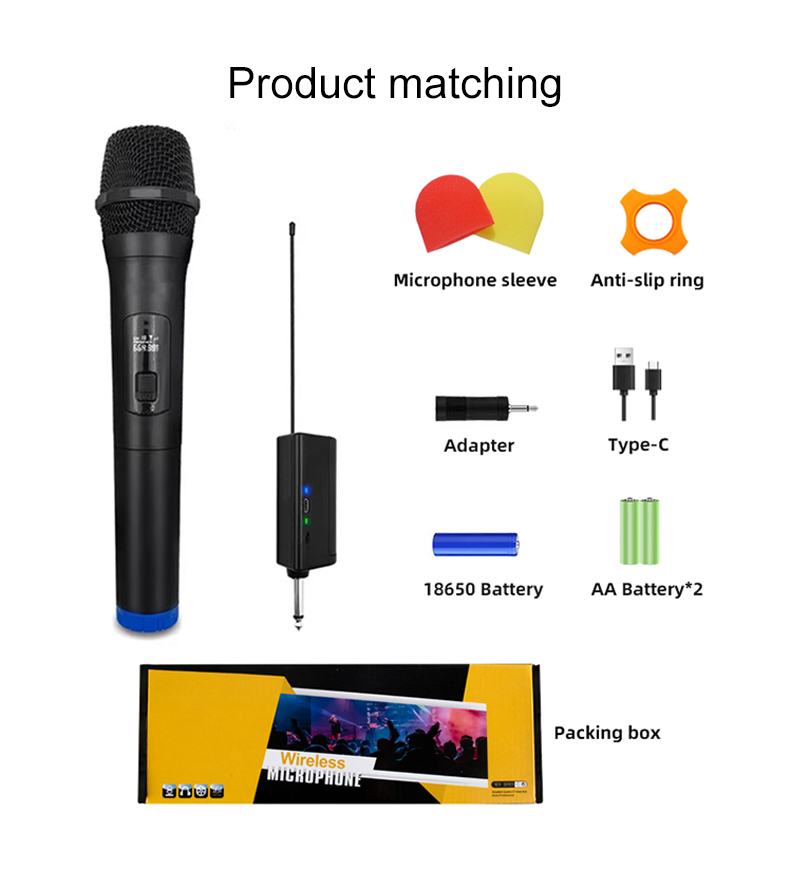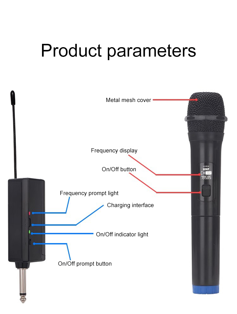 ●The mic data is send by wireless to the receiver match the frequency. if the match successful, the frequency can switched between 10 frequency. and the handheld can change the frequency at any time then the receiver will follow the handheld to adjust the frequency automatically and jump to the corresponding frequency.