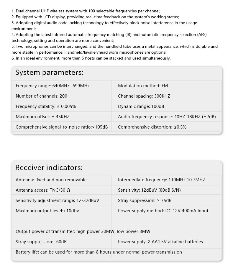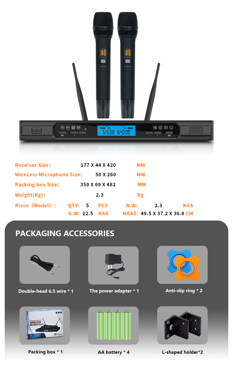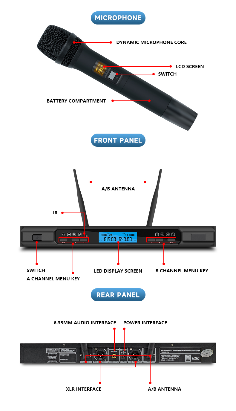 🎤【Sturdy and durable】:The wireless receiver and dynamic microphone are made of sturdy metal construction that is resistant to impact and corrosion, and the microphone grille is equipped with an internal microphone mesh that protects against wind and noise, and prevents moisture from eroding the interior of the microphone.wireless microphones &system Durable 2 handheld wireless mics with individual volume control for each channel.