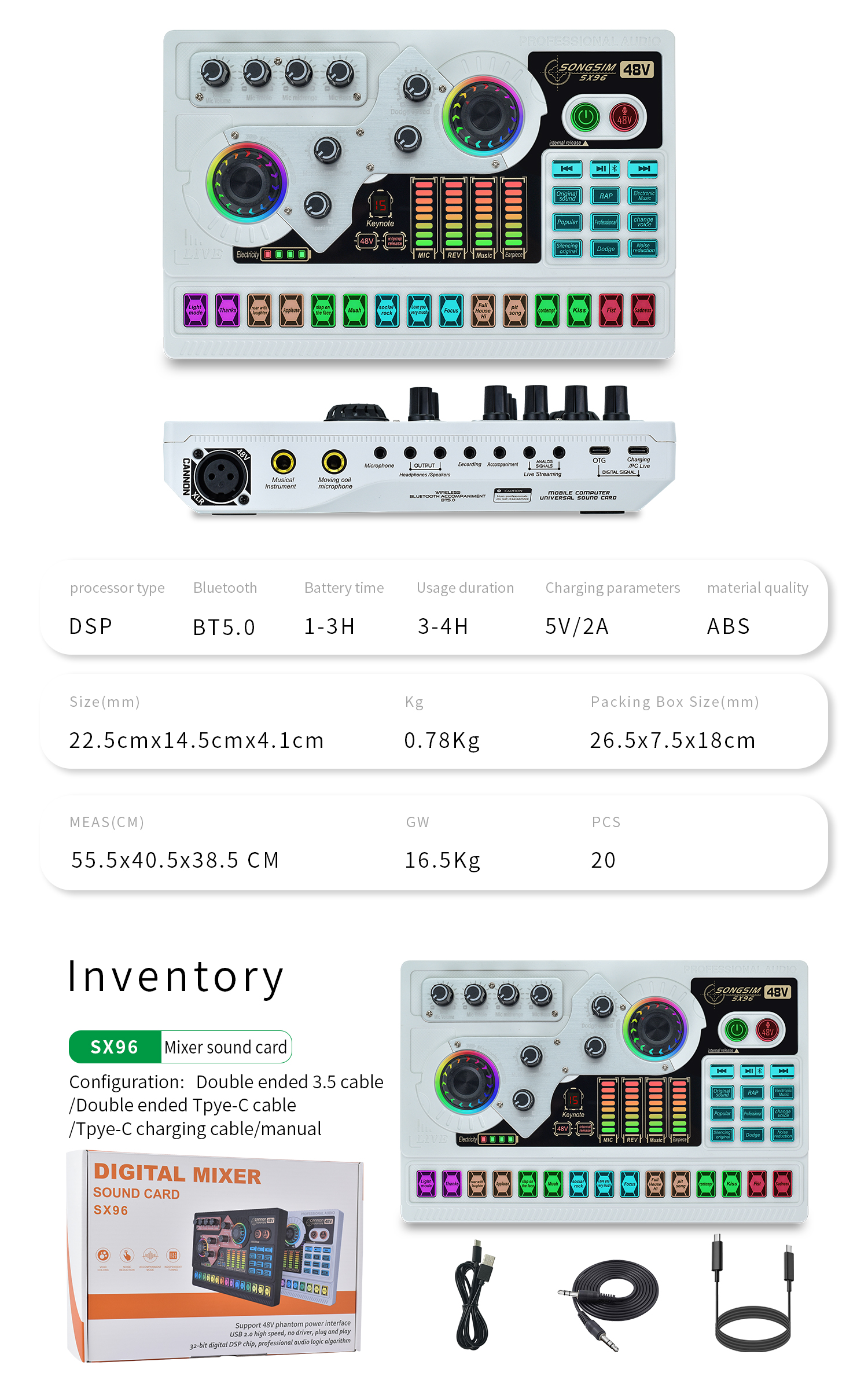 - [One-stop Sound Mixer] X5 soundboard for streaming offers an easy-to-use, all-in-one, onboard audio solution for podcasting, streaming, gaming, and more, allows you control individually Mic, ISNT, Music, Headphones, Output, 3-band EQ, Reverb and more, streamline your setup and optimize your production, get perfect mixing for your podcast and streaming, take your home content creations to a whole new level.