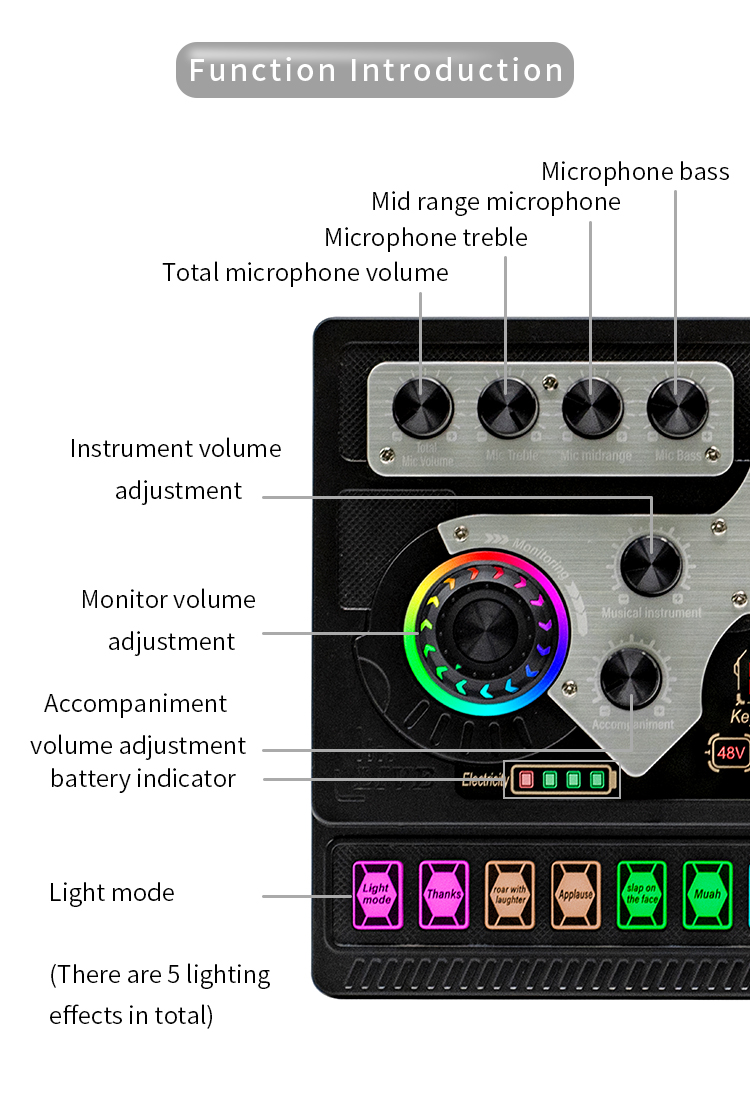 - XLR Mic Input] Directly use it with your favorite microphone, The XLR audio interface features XLR, ¼", ⅛", etc mic ports and ⅛" TRRS headset mic. The XLR audio mixer supports high-end dynamic microphones thanks for the ultra-clean, low-noise preamps, boost XLR condenser microphones through built-in 48V phantom power, for recording with crystal-clear audio, and evelling up your home studio audio production.