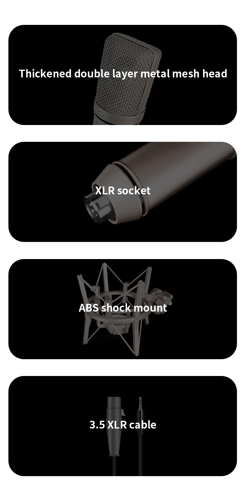 Connect to an audio interface or mixer via XLR, or plug directly into a computer via USB to record studio-grade sound in any setup – an all-in-one digital recording solution for the home or the studio