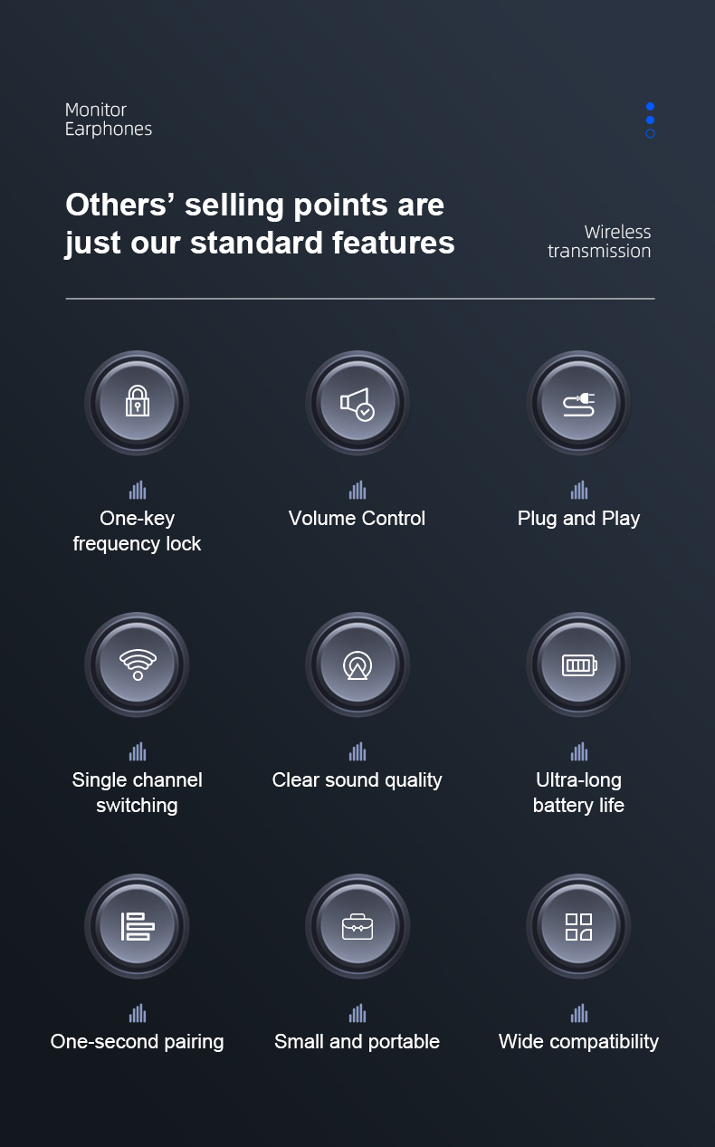 One-button mono/stereo switch: you can switch the mono/stereo input mode with a short press, and the setting is simple and silky. Use an in-ear monitor system in the recording studio or on the instrument track without the use of external speakers. Helps to record without disturbing any neighbors and family members.