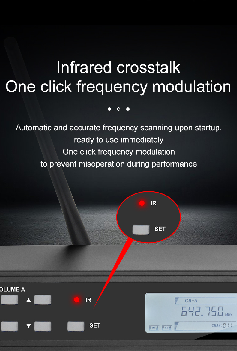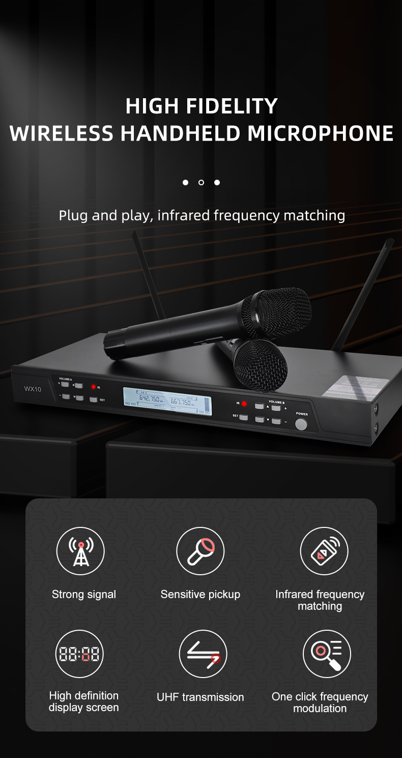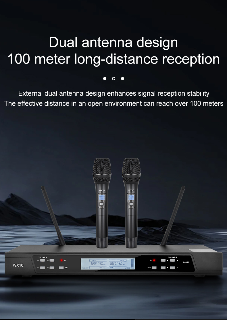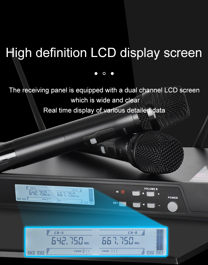SENSATIONAL SOUND, POWERFUL FUNCTIONS: 2 UHF wireless microphones have special dynamic polar pattern cartridges for pristine, lush, sensational sound. Sponge design and advanced circuitry fitter pops, clicks, and unwanted ambient noises for each dynamic microphone. This UHF receiver is equipped with auto scan, squelch control, and lock functions, to locate the best frequency, decrease white noises, and lock your setting. Effectively delivers minimum feedback and cutoffs.