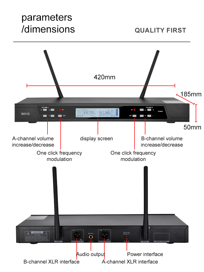 PROFESSIONAL-GRADE WIRELESS PERFORMANCE: Dual channel UHF band audio wireless microphone system with the state-of-art true diversity circuitry to increase anti-interference capability. The wireless mic set delivers exceptionally stable transmission and reception.