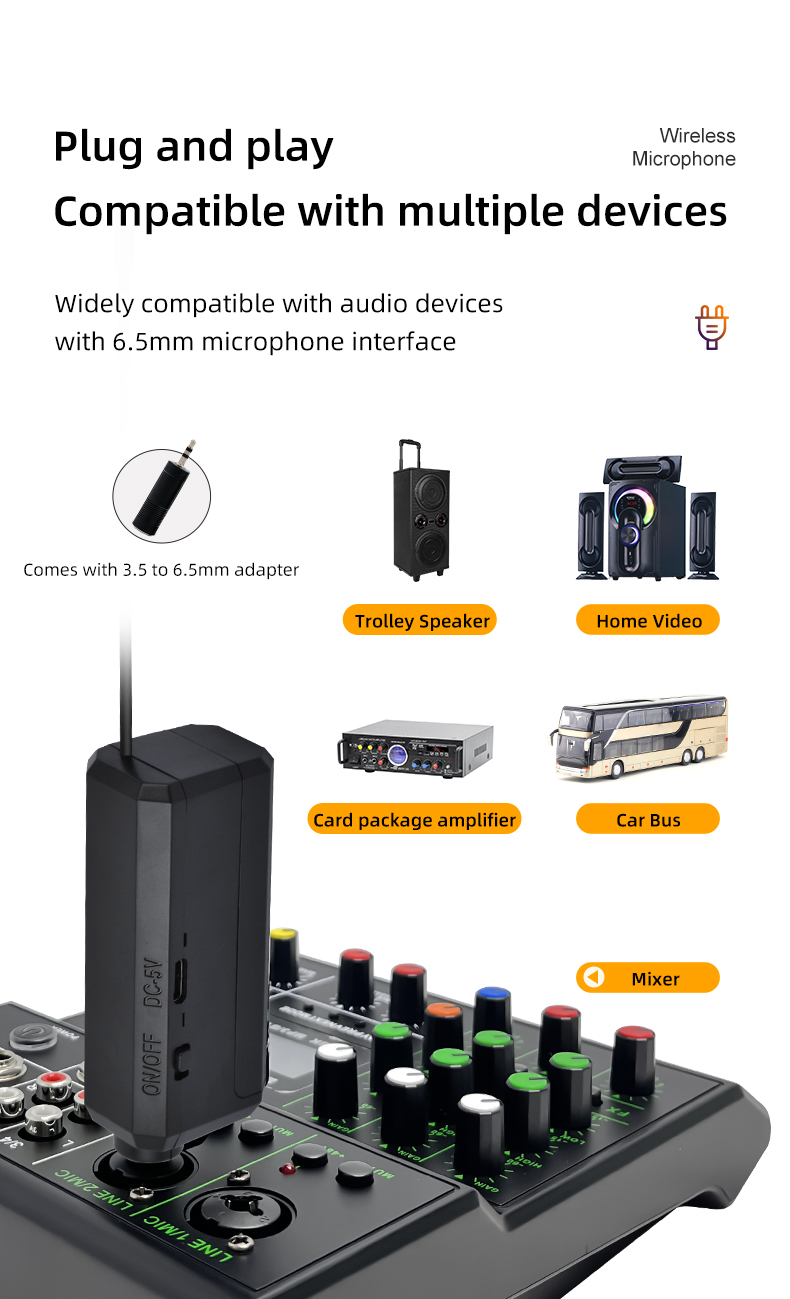 Compatibility: Excellent signal stability, compatible with powered speaker, karaoke machine, amplifier, mixer, and audio interface. (NOTE: the system is not compatible with phones, computers, or tablets.)