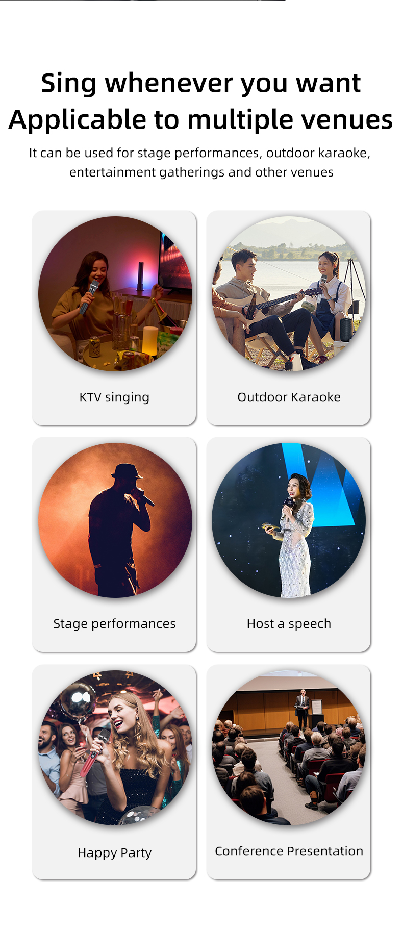 Wireless Freedom: 200ft operating range (line of sight) to freely move around during performances, suitable for indoor and outdoor activities, such as home karaoke, church, wedding, conference, speech and small stage performance.