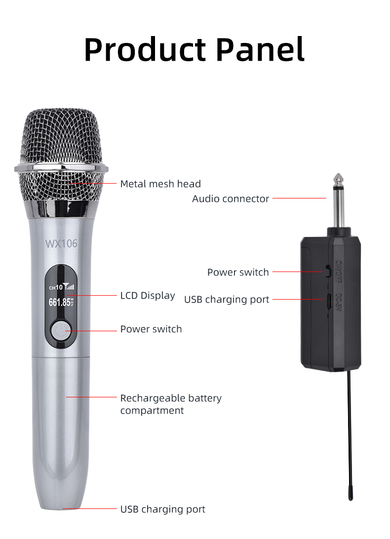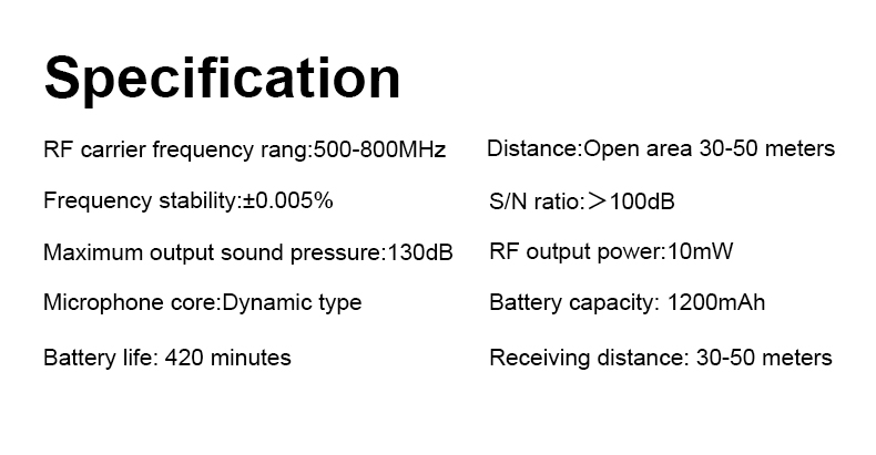 Rechargeable Battery: The rechargeable and portable receiver only needs to charge for about 2-3 hours and can be used up to 6 hours. Both mic and receiver are made of rugged metal, which has strong impact and corrosion resistance.