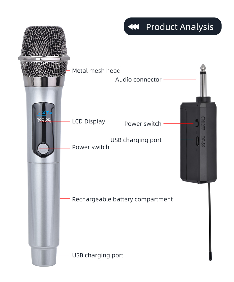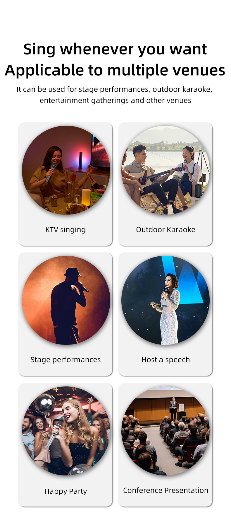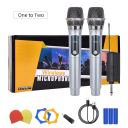 【Upgraded Wireless Microphone】- Wireless microphone updates frequency which makes the connection range up to 200Ft (60m). It makes of high frequency technology that wireless microphone has more stable signal. Tamper-proof, 0 delay! It’s very suitable for family karaoke, churches, weddings, conferences, and small stage performances. 【Easy Set Up】- There is no any software download needed, and the frequency has been sat up, its easy as just plug and play, no required pairing. The wireless microphone has superior signal stability and is compatible with karaoke machines, powered speaker, amplifier, mixer, audio interface.(Please wait a few minutes for the receiver and microphone to pair before first use.) 【Long Lasting Entertainment】- wireless microphone comes with 1200mah batteries, it could work for 50h. Wireless microphones and receiver all adopt USB-C charging port that only need 3-4h to fully charge. No need to buy battery again and again. 【DSP Noise Reduction】- Dual handheld cordless microphone was designed with DSP noise reduction technology, it could reduce the background noise to the most degree and clearly pick up the human voice. Equipped with a professional audio processor that can adjust high and low frequencies to ensure sound quality while transmitting sound more efficiently.